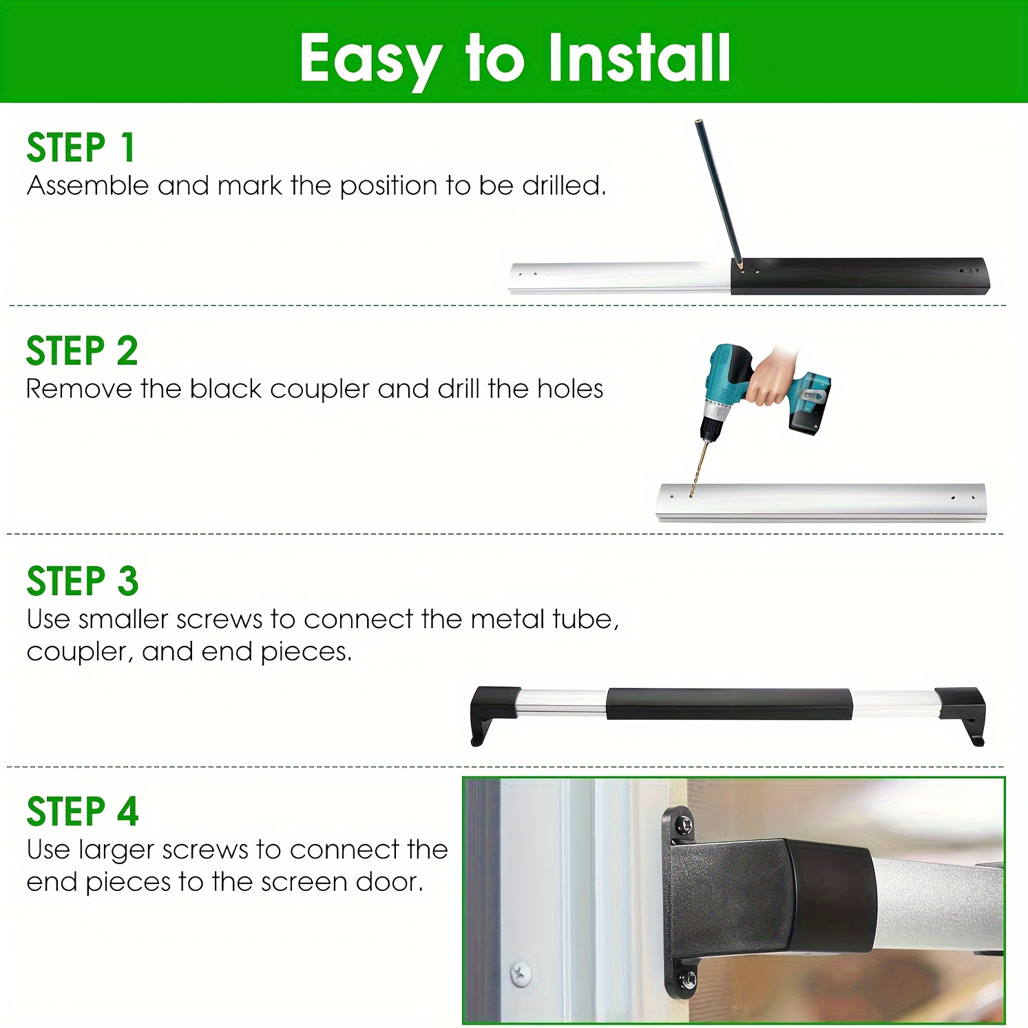Prevent damage to your RV and Trailer exterior door with a solid grab handle. Made of Sturdy Aluminum, Extendable from 21-5/8″ to 28-5/8″ in length for exterior screen door installation.